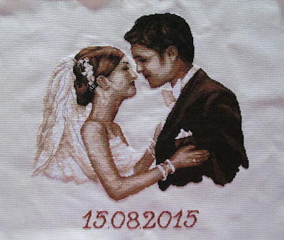 14. Zestaw Vervaco. Córa (3 l.) ma już metryczkę, pora więc na syna (8 l.). Moja jedyna zmiana to wymiana aidy na kawałek płótna 28 ct :)